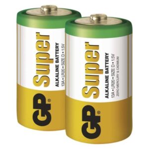 chemické zloženie: alkalické|hmotnosť: 135 g|kapacita: neuvádza sa|kategória/rada: Super Alkaline|max. skladovateľnosť: 10 rokov|možnosť nabíjania: nie|napätie: 1,5 V|počet nabíjacích cyklov: nenabíjacie|predajný obal: 2 ks, blister|prevádzková teplota: -20 °C až +54 °C|rozmer: 34,2 × 61,5 mm|typové označenie: LR20 (veľké mono, D)|veľkosť batérie: D|značka: GP