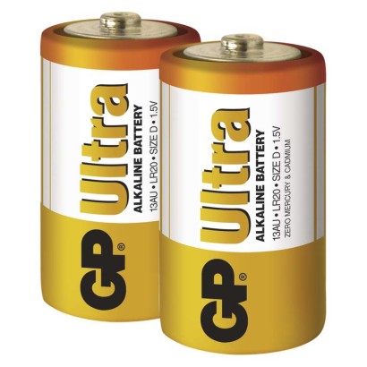 chemické zloženie: alkalické|hmotnosť: 142 g|kapacita: neuvádza sa|kategória/rada: Ultra Alkaline|max. skladovateľnosť: 10 rokov|možnosť nabíjania: nie|napätie: 1,5 V|počet nabíjacích cyklov: nenabíjacie|predajný obal: 2 ks, blister|prevádzková teplota: -20 °C až +54 °C|rozmer: 34,2 × 61,5 mm|typové označenie: LR20 (veľké mono, D)|veľkosť batérie: D|značka: GP