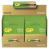 Alkalická batéria GP Ultra LR6 (AA) chemické zloženie: alkalické|hmotnosť: 28 g|kapacita: neuvádza sa|kategória/rada: Ultra Alkaline|max. skladovateľnosť: 10 rokov|možnosť nabíjania: nie|napätie: 1,5 V|počet nabíjacích cyklov: nenabíjacie|predajný obal: 4 ks, papierová krabička|prevádzková teplota: -20 °C až +54 °C|rozmer: 14,5 × 50,5 mm|typové označenie: LR6 (tužka, AA)|veľkosť batérie: AA|značka: GP Mena produktu: EUR Cena platí do: 1970-01-01 chemické […] zobraziť celý popis