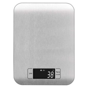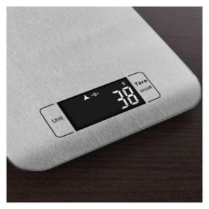 automatické vypnutie: po 2 minútach|Bluetooth: nie|BMI index – meranie tuku, vody a svalovej hmoty: nie|farba: strieborná|funkcia dovažovania: áno|indikácia slabých batérií: áno|indikátor preťaženia: áno|jednotky váhy: g, oz, lb, kg|LCD displej: áno|max. záťaž: 5 kg|napájanie: 2× 3 V CR2032 (súčasťou balenia)|pamäť: nie|podsvietený displej: áno|povrch váhy: nerez|predajný obal: 1 ks, krabička|presnosť váženia: 1 g|produkt: kuchynská váha|rozmer: 15 × 163 × 221 mm