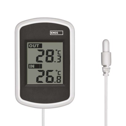 12/24 formát času: nie|budík: nie|časové pásma: nie|dátum: nie|dosah vo voľnom priestore: nie|drôtová sonda k čidlu: 2 m, Ø 8 mm|farebný displej (black mask) podsvietený: nie|funkcie stopky: nie|hodiny: nie|kalendár: nie|LED podsvietenie displeja: nie|magnet na pripevnenie: nie|min. a max. teplota: nie|možné ďalšie čidlo: nie|možnosť nastavenia jednotky teploty °C/°F: °C|možnosť zavesenia na stenu: áno|napájanie čidla: nie|napájanie stanice: 2× 1,5 V AAA (nie sú súčasťou balenia)|odpočet času max. od: nie|opakované budenie: nie|pamäť poslednej hodnoty: nie|predajný obal: 1 ks, krabička|prenosová frekvencia: nie|prevedenie teplomera: drôtový|rozmer čidla: nie|rozmer hlavnej jednotky: 18 × 57 × 85 mm|sieťový adaptér: nie|teplotná výstraha: nie|teplotný index: nie|trend teploty: nie|trend tlaku: nie|trvalé podsvietenie: nie|veľkosť displeja: 34 × 40 mm|vnútorná teplota: 0 °C až +60 °C, rozlíšenie 0,1 °C|vnútorná vlhkosť: nie|vonkajšia teplota: -40 °C až +60 °C, rozlíšenie 0,1 °C|vonkajšia vlhkosť: nie