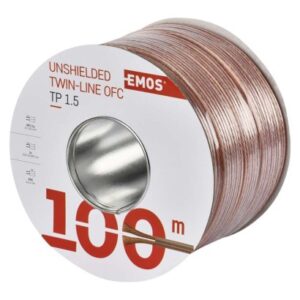 dvojitá izolácia: nie|farba izolácie vnútorných vodičov: nie je|farba plášťa: priehľadná, priehľadná|materiál plášťa: PVC|materiál vnútorného vodiča: OFC meď (Cu)|materiál vodičov tienenia: nie je|maximálne prevádzkové napätie: 50 V|počet drôtikov tienenia: nie je|predajný obal: 100 m, cievka|predpokladané použitie: prepojenie reproduktorov|priemer vnútorného vodiča: 210× 0,095 mm|prierez drôtikov tienenia: nie je|prierez vodiča: 1,5 mm²|spôsob balenia – dĺžka: 100 m|tienenie: nie|typové označenie: SP150/TP|vonkajšia izolácia: 2× 3,6 mm|záručná doba: 5 rokov