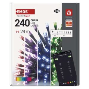 GoSmart LED vianočná reťaz, 24 m, vonkajšia aj vnútorná, RGB, programy, časovač, wifi časovač: áno|diaľkový ovládač: nie|dĺžka prívodu: 5 m|farba drôtu: čierna|farba svetla: RGB|funkcia: 64 módov (multifunkcie)|krytie: IP44|LED medzera: neuvádza sa|materiál: PVC|možnosť prepojenia: nie|počet LED: 240|použitie: vonkajšie aj vnútorné|predajný obal: 1 ks, krabica|pre výšku stromu: neuvádza sa|príkon: 8,4 W|produkt: reťaz|rozmer: 24 m|tvar: neuvádza sa|typ napájania: […] zobraziť celý popis