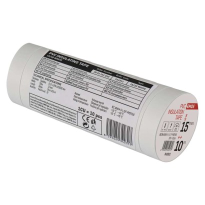dĺžka návinu: 10 m|elektrická pevnosť minimálne: 40 kV/mm|elektrická pevnosť po vlhku minimálne: 35 kV/mm|farba: biela|hrúbka pásky: 0,13 mm|integrovaná textilná sieťka: nie|materiál lepidla: kaučuk|odolné UV: áno|odporúčaná skladovacia teplota: 10–45 °C|pevnosť v ťahu: 150 N/10 mm|potlač: bez potlače|predajný obal: 10 ks, fólia|predĺženie minimálne: 125 %|predpokladané použitie: izolácia káblov|priľnavosť k oceli minimálne: 1,8 N/10 mm|priľnavosť k podkladu: 1,5 N/10 mm|rozmer: 60 × 15 mm|rozsah inštalačných teplôt: -25–90 °C|samozhášavé: nie|šírka pásky: 15 mm|skúška plameňom: <1 sec|spĺňa smernicu REACH: áno|spĺňa smernicu ROHS: áno|typ pásky: PVC|vodotesný spoj: áno|vyhovuje norme: ČSN EN 60454-3-1|vytvára tlakotesný spoj: nie