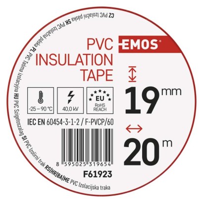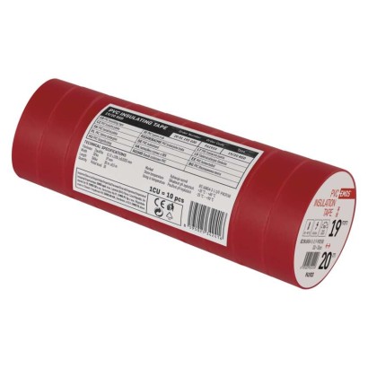 dĺžka návinu: 20 m|elektrická pevnosť minimálne: 40 kV/mm|elektrická pevnosť po vlhku minimálne: 35 kV/mm|farba: červená|hrúbka pásky: 0,13 mm|integrovaná textilná sieťka: nie|materiál lepidla: kaučuk|odolné UV: áno|odporúčaná skladovacia teplota: 10–45 °C|pevnosť v ťahu: 150 N/10 mm|potlač: bez potlače|predajný obal: 10 ks, fólia|predĺženie minimálne: 125 %|predpokladané použitie: izolácia káblov|priľnavosť k oceli minimálne: 1,8 N/10 mm|priľnavosť k podkladu: 1,5 N/10 mm|rozmer: 70 × 20 mm|rozsah inštalačných teplôt: -25–90 °C|samozhášavé: nie|šírka pásky: 19 mm|skúška plameňom: <1 sec|spĺňa smernicu REACH: áno|spĺňa smernicu ROHS: áno|typ pásky: PVC|vodotesný spoj: áno|vyhovuje norme: ČSN EN 60454-3-1|vytvára tlakotesný spoj: nie