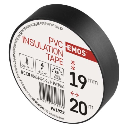 dĺžka návinu: 20 m|elektrická pevnosť minimálne: 40 kV/mm|elektrická pevnosť po vlhku minimálne: 35 kV/mm|farba: čierna|hrúbka pásky: 0,13 mm|integrovaná textilná sieťka: nie|materiál lepidla: kaučuk|odolné UV: áno|odporúčaná skladovacia teplota: 10–45 °C|pevnosť v ťahu: 150 N/10 mm|potlač: bez potlače|predajný obal: 10 ks, fólia|predĺženie minimálne: 125 %|predpokladané použitie: izolácia káblov|priľnavosť k oceli minimálne: 1,8 N/10 mm|priľnavosť k podkladu: 1,5 N/10 mm|rozmer: 70 × 20 mm|rozsah inštalačných teplôt: -25–90 °C|samozhášavé: nie|šírka pásky: 19 mm|skúška plameňom: <1 sec|spĺňa smernicu REACH: áno|spĺňa smernicu ROHS: áno|typ pásky: PVC|vodotesný spoj: áno|vyhovuje norme: ČSN EN 60454-3-1|vytvára tlakotesný spoj: nie