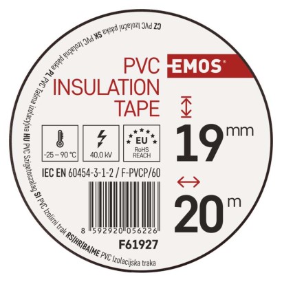 dĺžka návinu: 20 m|elektrická pevnosť minimálne: 40 kV/mm|elektrická pevnosť po vlhku minimálne: 35 kV/mm|farba: hnedá|hrúbka pásky: 0,13 mm|integrovaná textilná sieťka: nie|materiál lepidla: kaučuk|odolné UV: áno|odporúčaná skladovacia teplota: 10–45 °C|pevnosť v ťahu: 150 N/10 mm|potlač: bez potlače|predajný obal: 10 ks, fólia|predĺženie minimálne: 125 %|predpokladané použitie: izolácia káblov|priľnavosť k oceli minimálne: 1,8 N/10 mm|priľnavosť k podkladu: 1,5 N/10 mm|rozmer: 70 × 20 mm|rozsah inštalačných teplôt: -25–90 °C|samozhášavé: nie|šírka pásky: 19 mm|skúška plameňom: <1 sec|spĺňa smernicu REACH: áno|spĺňa smernicu ROHS: áno|typ pásky: PVC|vodotesný spoj: áno|vyhovuje norme: ČSN EN 60454-3-1-2/F-PVC/60|vytvára tlakotesný spoj: nie