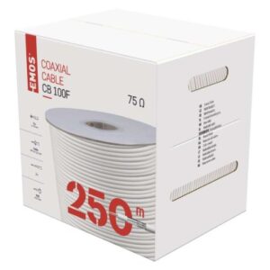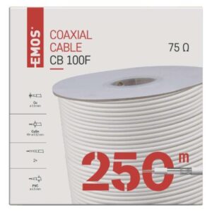 Koaxiálny kábel CB100F, 250m APE = vzduchové dielektrikum: nie|činiteľ skrátenia: 0,82|dielektrikum typ, priemer: FPE 4,6 mm|farba izolácie napájacích vodičov: neuvádza sa|farba plášťa kábla: biela|FPE = penové dielektrikum: áno|hmotnosť (kg/km): 40,5|impedancia: 75 Ohm|izolácia napájacích vodičov: neuvádza sa|izolačný odpor medzi jadrami pri 20 °C (MOhm/ km): 500|kapacita (pF/ m): 54|konštrukcia napájacích vodičov: neuvádza sa|materiál plášťa kábla: PVC|materiál […] zobraziť celý popis