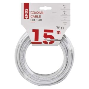 Koaxiálny kábel CB130, 15m APE = vzduchové dielektrikum: nie|činiteľ skrátenia: 0,84|dielektrikum typ, priemer: FPE 4,8 mm|farba izolácie napájacích vodičov: neuvádza sa|farba plášťa kábla: biela|FPE = penové dielektrikum: áno|hmotnosť (kg/km): 40,5|impedancia: 75 Ohm|izolácia napájacích vodičov: neuvádza sa|izolačný odpor medzi jadrami pri 20 °C (MOhm/ km): 500|kapacita (pF/ m): 55|konštrukcia napájacích vodičov: neuvádza sa|materiál plášťa kábla: PVC|materiál […] zobraziť celý popis