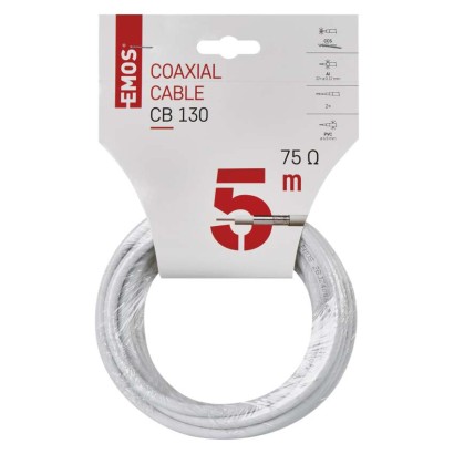 APE = vzduchové dielektrikum: nie|činiteľ skrátenia: 0,84|dielektrikum typ, priemer: FPE 4,8 mm|farba izolácie napájacích vodičov: neuvádza sa|farba plášťa kábla: biela|FPE = penové dielektrikum: áno|hmotnosť (kg/km): 40,5|impedancia: 75 Ohm|izolácia napájacích vodičov: neuvádza sa|izolačný odpor medzi jadrami pri 20 °C (MOhm/ km): 500|kapacita (pF/ m): 55|konštrukcia napájacích vodičov: neuvádza sa|materiál plášťa kábla: PVC|materiál tienenia: hliník (Al)|materiál vnútorného vodiča: meďou plátovaný oceľový drôt (CCS)|max.rovn.odpor pri 20 °C (Ohm/km) - vnútorné jadro: 25,7|max.rovn.odpor pri 20 °C, (Ohm/km) - vonkajšie jadro: 45,9|max. útlm pri 20 °C (dB/100m) 1 000 MHz: 22,5|max. útlm pri 20 °C (dB/100m) 100 MHz: 7,4|max. útlm pri 20 °C (dB/100m) 10 MHz: 2,3|max. útlm pri 20 °C (dB/100m) 2 000 MHz: 34|max. útlm pri 20 °C (dB/100m) 450 MHz: 15,5|max. útlm pri 20 °C (dB/100m) 650 MHz: 18,2|max. útlm pri 20 °C (dB/100m) 860 MHz: 20,8|min. polomer ohybu jednorazový/ násobný: 30/60 mm|min. útlm odrazu pri 20 °C (dB) 10–300 MHz: 25|min. útlm odrazu pri 20 °C (dB) 300–600 MHz: 23|min. útlm odrazu pri 20 °C (dB) 600–900 MHz: 20|min. útlm tienenia (dB) 10 ~ 800 MHz: 75|montážna teplota: +5 °C až +60 °C|nebezpečné látky: nepodlieha CPR|odolné UV: nie|odporúčané typy konektorov - F lisovacie: *K7220|odporúčané typy konektorov - F skrutkovacie: *K7331|PE = polyetylénové dielektrikum: nie|PES = vrstva fólie: nie|počet drôtikov tienenia: 32× 0,12 mm|počet tienení: 2|pokrytie tienenia: 28 %|predajný obal: 5 m, headercard|priemer plášťa kábla: 6,8 mm|priemer tienenia: 32× 0,12 mm²|priemer vnútorného vodiča: 1,02 mm|prierez napájacích vodičov: neuvádza sa|skladovacia teplota: -20 °C až +75 °C|spôsob balenia - dĺžka: 5 m|spôsob balenia - ozn. metráží: áno|spôsob balenia - typ cievky: PVC krabica|tienenie I. fólie: 1× Al/PES|tienenie II. fólie: nie je|trieda reakcie na oheň: nepodlieha CPR|typ koaxiálneho kábla: CB130|vhodné pre vonkajšie použitie: nie|zamýšľané použitie: vnútorné rozvody|záručná doba: 2 roky