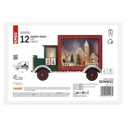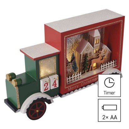 LED adventný kalendár, drevené auto, 20x30,5 cm, 2x AA, vnútorný, teplá biela, časovač