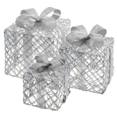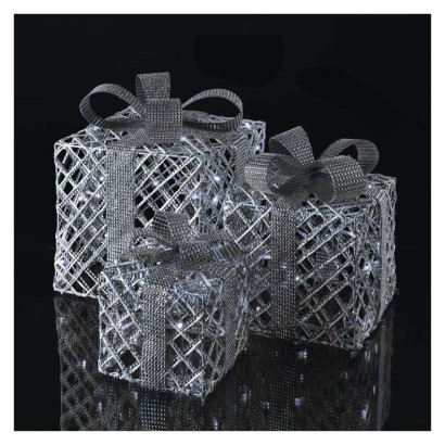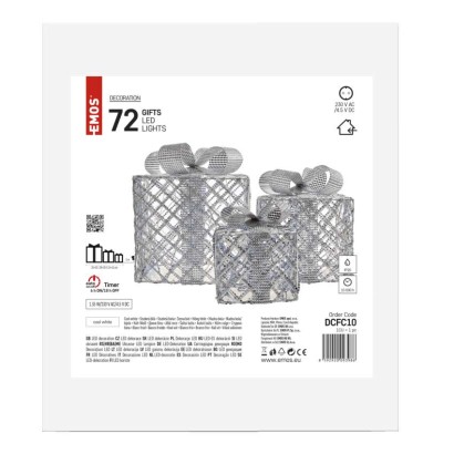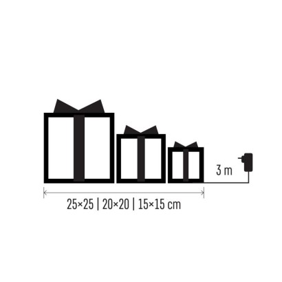 LED darčeky, 3 veľkosti, vnútorné, studená biela, časovač časovač: áno|diaľkový ovládač: nie|dĺžka prívodu: 3 m|farba drôtu: neuvádza sa|farba svetla: studená biela|krytie: IP20|materiál: kov|počet LED: 72|použitie: vnútorné|predajný obal: 1 ks, krabica|príkon: 1,35 W|produkt: darčeky|rozmer: 15/20/25 × 15/20/25 cm|typ napájania: sieťový adaptér|vstupné napätie: 230 V AC|výstupné napätie: 4,5 V DC|záručná doba: 2 roky|zdroj svetla: LED|životnosť: 10 000 […] zobraziť celý popis