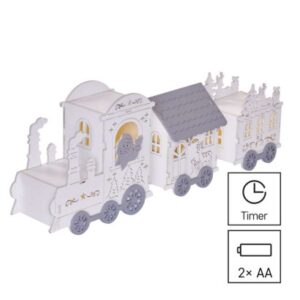 časovač: áno|diaľkový ovládač: nie|dĺžka prívodu: neuvádza sa|farba drôtu: neuvádza sa|farba svetla: teplá biela|krytie: IP20|materiál: drevo|počet LED: 3|použitie: vnútorné|predajný obal: 1 ks, krabica|príkon: 0,2 W|produkt: vláčik|rozmer: 41,5 × 7 × 14 cm|typ napájania: batéria (2× AA)|vstupné napätie: neuvádza sa|výstupné napätie: 3 V DC|záručná doba: 2 roky|zdroj svetla: LED|životnosť: 10 000 hodín
