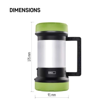 batérie súčasťou balenia: áno|doba nabíjania: 7 h|doba svietenia: 5–23 h|doba svietenia detail: #|dosvit: #|farba: čierno-zelená|fokus: nie|hmotnosť: 406 g|LED indikácia nabíjania: áno|LED indikácia stavu akumulátora: áno|materiál: plast + guma|maximálny dosvit: 260 m|maximálny svetelný tok: 350 lm|nabíjací: áno|napájanie: Li-Ion akupack|nárazuvzdornosť: áno|počet režimov svietenia: 7|predajný obal: 1 ks, krabica|príslušenstvo: USB-C kábel|režimy: #|rozmer: 175 × 91 mm|špeciálna funkcia: funkcie powerbank, funkcia rýchleho vypnutia, funkcia ochrany batérie|svetelný tok: #|typ batérie: 2× 2 000 mAh/3,7 V|typ napájacieho konektoru: USB C|vodeodolná: áno|vybavenie: naklápacie rukoväť, 1× hák, 3× magnet, výstražný červený trojuholník|záručná doba: 2 roky|zdroj svetla: SMD LED + LED|značka: EMOS