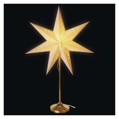 LED hviezda papierová so zlatým stojančekom, 45 cm, vnútorná časovač: nie|diaľkový ovládač: nie|dĺžka prívodu: 1,6 m|farba drôtu: biela|farba svetla: neuvádza sa|krytie: IP20|materiál: papier|počet LED: neuvádza sa|použitie: vnútorné|predajný obal: 1 ks, krabica|príkon: 25 W max.|produkt: hviezda|rozmer: 45 × 67 cm|typ napájania: sieť|vstupné napätie: 230 V AC|výstupné napätie: neuvádza sa|záručná doba: 2 roky|zdroj svetla: E14|životnosť: 10 000 […] zobraziť celý popis