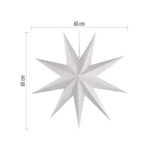 časovač: nie|diaľkový ovládač: nie|dĺžka prívodu: 3,2 m|farba drôtu: biela|farba svetla: neuvádza sa|krytie: IP20|materiál: papier|počet LED: neuvádza sa|použitie: vnútorné|predajný obal: 1 ks, krabica|príkon: 25 W max.|produkt: hviezda|rozmer: 60 cm|typ napájania: sieť|vstupné napätie: 230 V AC|výstupné napätie: neuvádza sa|záručná doba: 2 roky|zdroj svetla: E14|životnosť: 10 000 hodín