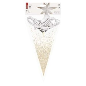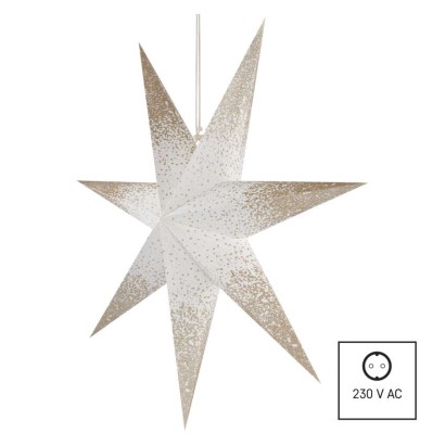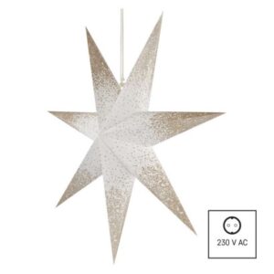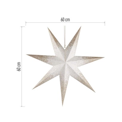 LED hviezda papierová závesná so zlatými trblietkami na okrajoch, biela, 60 cm, vnútorná časovač: nie|diaľkový ovládač: nie|dĺžka prívodu: 3,2 m|farba drôtu: biela|farba svetla: neuvádza sa|krytie: IP20|materiál: papier|počet LED: neuvádza sa|použitie: vnútorné|predajný obal: 1 ks, krabica|príkon: 25 W max.|produkt: hviezda|rozmer: 60 cm|typ napájania: sieť|vstupné napätie: 230 V AC|výstupné napätie: neuvádza sa|záručná doba: 2 roky|zdroj svetla: E14|životnosť: […] zobraziť celý popis