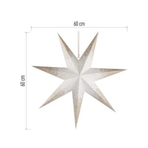 LED hviezda papierová závesná so zlatými trblietkami na okrajoch, biela, 60 cm, vnútorná