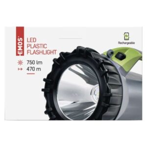 batérie súčasťou balenia: áno|doba nabíjania: 6,5 h|doba svietenia: 15–30 h|doba svietenia detail: LED 50 % – 30 h, LED 100 % – 15 h|dosvit: LED 50 % – 300 m, LED 100 % – 470 m|farba: sivo-čierno-zelená|fokus: nie|hmotnosť: 527 g|LED indikácia nabíjania: áno|LED indikácia stavu akumulátora: nie|materiál: ABS plast|maximálny dosvit: 470 m|maximálny svetelný tok: 750 lm|nabíjací: áno|napájanie: Li-Ion akupack|nárazuvzdornosť: nie|počet režimov svietenia: 3|predajný obal: 1 ks, krabica|príslušenstvo: napájací adaptér, adaptér do automobilu, popruh na rameno|režimy: LED 50 %, LED 100 %, blikanie|rozmer: 212 × 150 × 155 mm|špeciálna funkcia: funkcie ochrany batérie, funkcia powerbánky|svetelný tok: LED 50 % – 310 lm, LED 100 % – 750 lm|typ batérie: 4 000 mAh/3,7 V|typ napájacieho konektoru: micro USB B|vodeodolná: nie|vybavenie: neuvádza sa|záručná doba: 2 roky|zdroj svetla: OSRAM LED|značka: EMOS