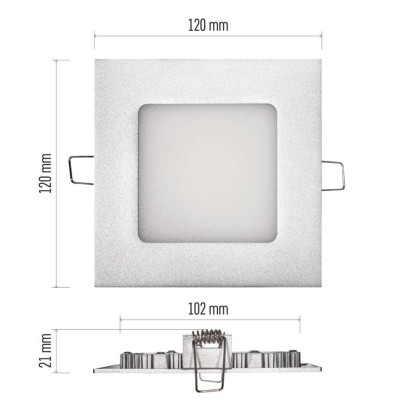 diaľkový ovládač: nie|do chodby a na schodisko: áno|do dielne a garáže: nie|do kancelárie: nie|do kuchyne: áno|do kúpeľne: nie|do obývačky, spálne a detskej izby: áno|dosah senzora: nemá senzor|do záhrady a na balkón: nie|farba svetla: neutrálna biela|farba tela: strieborná|flicker-free: áno|frekvencia: 50/60 Hz|index podania farieb (CRI): Ra > 82|kategória: PROFI|krytie: IP20|materiál difúzora: plast (PS)|materiál LGP: PMMA|materiál tela: hliník|montážny otvor: 102 mm|možnosť stmievania: nie|náhrada za žiarovku: 40 W|napätie: 220–240 V|pohybový senzor: nie|predajný obal: 1 ks, krabica|príkon: 6 W|prúd: 57 mA|rada: PROFI|rozmer: 120 × 120 × 21 mm|spôsob montáže: vstavané|svetelná účinnosť: 75 lm/W|svetelný tok: 450 lm|teplota chromatičnosti: 4 000 K|tvar: štvorec|typ difúzora: mliečny|typ svietidla: klasické svietidlo|účinník: > 0,5|UGR<: neuvádza sa|uhol vyžarovania: 120°|umiestnenie: stropné|výstupný prúd zo zdroja: 300 mA|záručná doba: 3 roky|zdroj svetla: LED|životnosť: 30 000 hodín