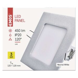 LED panel 120×120, štvorcový vstavaný strieb., 6W neutr. b. diaľkový ovládač: nie|do chodby a na schodisko: áno|do dielne a garáže: nie|do kancelárie: nie|do kuchyne: áno|do kúpeľne: nie|do obývačky, spálne a detskej izby: áno|dosah senzora: nemá senzor|do záhrady a na balkón: nie|farba svetla: neutrálna biela|farba tela: strieborná|flicker-free: áno|frekvencia: 50/60 Hz|index podania farieb (CRI): Ra > 82|kategória: […] zobraziť celý popis