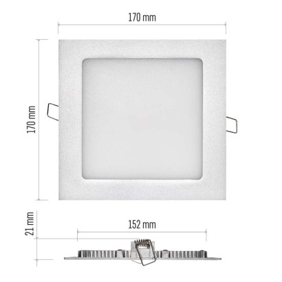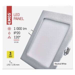 LED panel 170×170, štvorcový vstavaný strieb., 12,5W neutr.b. diaľkový ovládač: nie|do chodby a na schodisko: áno|do dielne a garáže: nie|do kancelárie: nie|do kuchyne: áno|do kúpeľne: nie|do obývačky, spálne a detskej izby: áno|dosah senzora: nemá senzor|do záhrady a na balkón: nie|farba svetla: neutrálna biela|farba tela: strieborná|flicker-free: áno|frekvencia: 50/60 Hz|index podania farieb (CRI): Ra > 82|kategória: PROFI|krytie: […] zobraziť celý popis