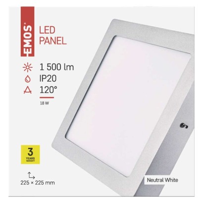 LED panel 225×225, štvorcový prisadený strieb., 18W neut.b. diaľkový ovládač: nie|do chodby a na schodisko: áno|do dielne a garáže: nie|do kancelárie: áno|do kuchyne: áno|do kúpeľne: nie|do obývačky, spálne a detskej izby: áno|dosah senzora: nemá senzor|do záhrady a na balkón: nie|farba svetla: neutrálna biela|farba tela: strieborná|flicker-free: áno|frekvencia: 50/60 Hz|index podania farieb (CRI): Ra > 82|kategória: PROFI|krytie: […] zobraziť celý popis