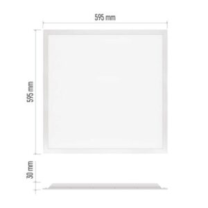 diaľkový ovládač: nie|do chodby a na schodisko: nie|do dielne a garáže: nie|do kancelárie: áno|do kuchyne: nie|do kúpeľne: nie|do obývačky, spálne a detskej izby: nie|dosah senzora: neuvádza sa|do záhrady a na balkón: nie|farba svetla: neutrálna biela|farba tela: biela|flicker-free: áno|frekvencia: 50/60 Hz|index podania farieb (CRI): Ra > 80|kategória: ESSENTIAL|krytie: IP20|materiál difúzora: plast (PC)|materiál LGP: neuvádza sa|materiál tela: oceľový plech|montážny otvor: neuvádza sa|možnosť stmievania: nie|náhrada za žiarovku: 4× 18 W CFL|napätie: 220–240 V|pohybový senzor: nie|predajný obal: 1 ks, krabica|príkon: 36 W|prúd: 155 mA|rada: neuvádza sa|rozmer: 595 × 595 × 30 mm|spôsob montáže: vstavané|svetelná účinnosť: 100 lm/W|svetelný tok: 3 600 lm|teplota chromatičnosti: 4 000 K|tvar: štvorec|typ difúzora: mliečny|typ svietidla: panel|účinník: > 0,9|UGR<: 22|uhol vyžarovania: 120°|umiestnenie: stropné|výstupný prúd zo zdroja: 860 mA|záručná doba: 2 roky|zdroj svetla: LED|životnosť: 25 000 hodín