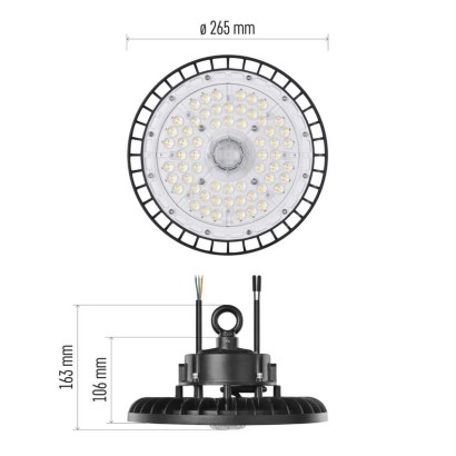 LED priemyselné závesné svietidlo HIGHBAY ASTER 60° 100W akumulátor: neuvádza sa|dĺžka prívodného kábla: 30 cm|doba svietenia na AKU: neuvádza sa|dosah PIR senzora: nemá PIR|farba: čierna|farba svetla: neutrálna biela|frekvencia: 50/60 Hz|index podania farieb (CRI): Ra > 80|krytie: IP65|materiál difúzora: plast (PC)|materiál prívodného kábla: guma|materiál tela: hliník|napájanie: zo siete|napätie: 220–240 V~|PIR senzor: nie|počet priechodných zásuviek: neuvádza sa|použitie: […] zobraziť celý popis