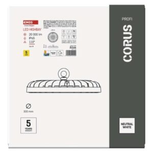 akumulátor: neuvádza sa|dĺžka prívodného kábla: 30 cm|doba svietenia na AKU: neuvádza sa|dosah PIR senzora: neuvádza sa|farba: čierna|farba svetla: neutrálna biela|frekvencia: 50/60 Hz|index podania farieb (CRI): Ra > 80|krytie: IP65|materiál difúzora: sklo|materiál prívodného kábla: guma|materiál tela: hliník|napájanie: zo siete|napätie: 220–240 V|PIR senzor: nie|počet priechodných zásuviek: neuvádza sa|použitie: závesná montáž|predajný obal: 1 ks, krabica|príkon: 166 W|prúd: 710 mA|rada: CORUS|rozmer: priemer 300 × 54 mm|rozsah pracovnej teploty: -20 °C až +40 °C|skúšobná žiarovka súčasťou balenia: neuvádza sa|stmievanie: nie|stupeň ochrany proti mechanickým nárazom: IK06|svetelný tok: 20 000 lm|teplota chromatičnosti: 4 000 K|typ priechodných zásuviek: neuvádza sa|typ prívodného kábla: neuvádza sa|účinník: > 0,9|uhol vyžarovania: 110°|záručná doba: 5 rokov|zdroj svetla: LED|životnosť: 50 000 hodín