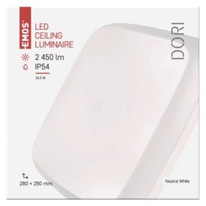 diaľkový ovládač: nie|do chodby a na schodisko: áno|do dielne a garáže: áno|do kancelárie: nie|do kuchyne: áno|do kúpeľne: áno|do obývačky, spálne a detskej izby: nie|dosah senzora: nemá senzor|do záhrady a na balkón: áno|farba svetla: neutrálna biela|farba tela: biela|flicker-free: áno|frekvencia: 50/60 Hz|index podania farieb (CRI): Ra > 80|kategória: CLASSIC|krytie: IP54|materiál difúzora: plast (PC)|materiál LGP: neuvádza sa|materiál tela: plast (PC)|montážny otvor: neuvádza sa|možnosť stmievania: nie|náhrada za žiarovku: 150 W|napätie: 220–240 V|pohybový senzor: nie|predajný obal: 1 ks, krabica|príkon: 24,5 W|prúd: 180 mA|rada: DORI|rozmer: 280 × 280 × 55 mm|spôsob montáže: prisadené|svetelná účinnosť: 85 lm/W|svetelný tok: 2 450 lm|teplota chromatičnosti: 4 000 K|tvar: štvorec|typ difúzora: mliečny|typ svietidla: klasické svietidlo|účinník: > 0,5|UGR<: neuvádza sa|uhol vyžarovania: 115°|umiestnenie: stropné/nástenné|výstupný prúd zo zdroja: neuvádza sa|záručná doba: 2 roky|zdroj svetla: LED|životnosť: 25 000 hodín