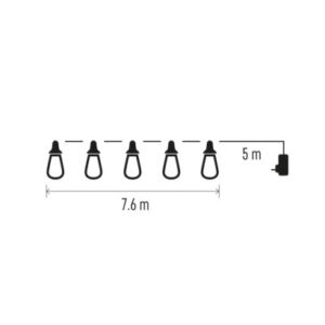 časovač: nie|diaľkový ovládač: nie|dĺžka prívodu: 5 m|farba drôtu: čierna|farba svetla: teplá biela|krytie: IP44|materiál: plast|počet LED: 16|použitie: vonkajšie aj vnútorné|predajný obal: 1 ks, krabica|príkon: 6 W|produkt: girlanda|rozmer: 7,6 m|typ napájania: sieťový adaptér|vstupné napätie: 230 V AC|výstupné napätie: 24 V DC|záručná doba: 2 roky|zdroj svetla: LED|životnosť: 10 000 hodín