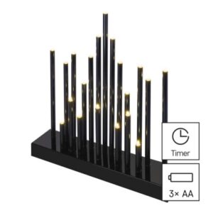LED svietnik čierny, 27,5 cm, 3x AA, vnútorný, teplá biela, časovač