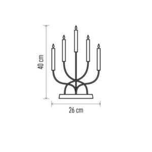 časovač: áno|diaľkový ovládač: nie|dĺžka prívodu: neuvádza sa|farba drôtu: neuvádza sa|farba svetla: teplá biela|krytie: IP20|materiál: kov|počet LED: 5|použitie: vnútorné|predajný obal: 1 ks, krabica|príkon: 0,2 W|produkt: svietnik|rozmer: 26 × 40 cm|typ napájania: batéria (2× AA)|vstupné napätie: neuvádza sa|výstupné napätie: 3 V DC|záručná doba: 2 roky|zdroj svetla: LED|životnosť: 10 000 hodín