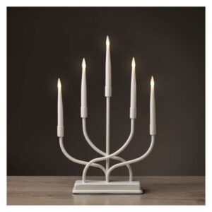 LED svietnik kovový biely, 40 cm, 2x AA, vnútorný, teplá biela časovač: áno|diaľkový ovládač: nie|dĺžka prívodu: neuvádza sa|farba drôtu: neuvádza sa|farba svetla: teplá biela|krytie: IP20|materiál: kov|počet LED: 5|použitie: vnútorné|predajný obal: 1 ks, krabica|príkon: 0,2 W|produkt: svietnik|rozmer: 26 × 40 cm|typ napájania: batéria (2× AA)|vstupné napätie: neuvádza sa|výstupné napätie: 3 V DC|záručná doba: 2 roky|zdroj svetla: […] zobraziť celý popis