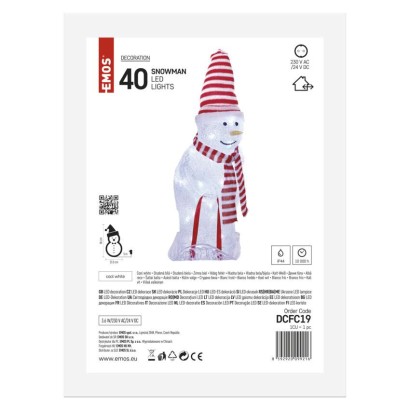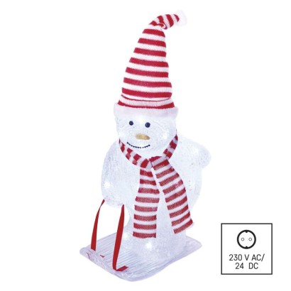 LED vianoč. snehuliak s čiapkou a šálom, 46 cm, vonkaj. aj vnútor., studená biela časovač: nie|diaľkový ovládač: nie|dĺžka prívodu: 5 m|farba drôtu: transparentná|farba svetla: studená biela|krytie: IP44|materiál: plast|počet LED: 40|použitie: vonkajšie aj vnútorné|predajný obal: 1 ks, krabica|príkon: 3,6 W|produkt: snehuliak|rozmer: 23,5 × 17 × 46 cm|typ napájania: sieťový adaptér|vstupné napätie: 230 V AC|výstupné napätie: 24 […] zobraziť celý popis