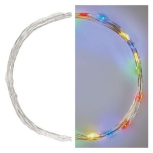 LED vianočná nano reťaz, 1,9 m, 2x AA, vnútorná, multicolor, časovač časovač: áno|diaľkový ovládač: nie|dĺžka prívodu: 0,5 m|farba drôtu: strieborná|farba svetla: multicolor|funkcia: svieti|krytie: IP20|LED medzera: 10 cm|materiál: kov|možnosť prepojenia: nie|počet LED: 20|použitie: vnútorné|predajný obal: 1 ks, krabica|pre výšku stromu: neuvádza sa|príkon: 1 W|produkt: nano reťaz|rozmer: 1,9 m|tvar: nano|typ napájania: batéria (2× AA)|veľkosť LED: 3 mm […] zobraziť celý popis