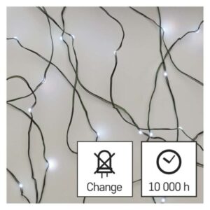 časovač: áno|diaľkový ovládač: nie|dĺžka prívodu: 5 m|farba drôtu: zelená|farba svetla: studená biela|funkcia: svieti|krytie: IP44|LED medzera: 10 cm|materiál: kov|možnosť prepojenia: nie|počet LED: 75|použitie: vonkajšie aj vnútorné|predajný obal: 1 ks, krabica|pre výšku stromu: 140 cm|príkon: 2,7 W|produkt: nano reťaz|rozmer: 7,5 m|tvar: nano|typ napájania: sieťový adaptér|veľkosť LED: 3 mm (nano)|vstupné napätie: 230 V AC|výstupné napätie: 4,5 V DC|záručná doba: 2 roky|životnosť: 10 000 hodín