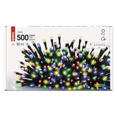 časovač: áno|diaľkový ovládač: nie|dĺžka prívodu: 5 m|farba drôtu: zelená|farba svetla: multicolor|funkcia: svieti|krytie: IP44|LED medzera: 10 cm|materiál: PVC|možnosť prepojenia: nie|počet LED: 500|použitie: vonkajšie aj vnútorné|predajný obal: 1 ks, krabica|pre výšku stromu: 300 cm|príkon: 6 W|produkt: reťaz|rozmer: 50 m|tvar: klasický|typ napájania: sieťový adaptér|veľkosť LED: 5 mm|vstupné napätie: 230 V AC|výstupné napätie: 31 V DC|záručná doba: 2 roky|životnosť: 10 000 hodín
