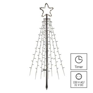 časovač: áno|diaľkový ovládač: nie|dĺžka prívodu: 4 m|farba drôtu: neuvádza sa|farba svetla: studená biela|krytie: IP44|materiál: kov|počet LED: 180|použitie: vonkajšie aj vnútorné|predajný obal: 1 ks, krabica|príkon: 3,6 W|produkt: stromček|rozmer: 180 cm|typ napájania: sieťový adaptér|vstupné napätie: 230 V AC|výstupné napätie: 31 V DC|záručná doba: 2 roky|zdroj svetla: LED|životnosť: 10 000 hodín