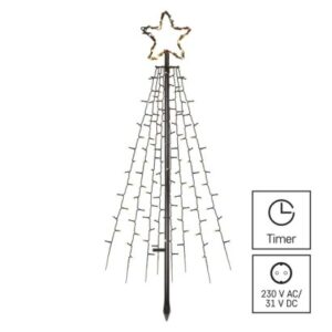 časovač: áno|diaľkový ovládač: nie|dĺžka prívodu: 4 m|farba drôtu: neuvádza sa|farba svetla: teplá biela|krytie: IP44|materiál: kov|počet LED: 180|použitie: vonkajšie aj vnútorné|predajný obal: 1 ks, krabica|príkon: 3,6 W|produkt: stromček|rozmer: 180 cm|typ napájania: sieťový adaptér|vstupné napätie: 230 V AC|výstupné napätie: 31 V DC|záručná doba: 2 roky|zdroj svetla: LED|životnosť: 10 000 hodín