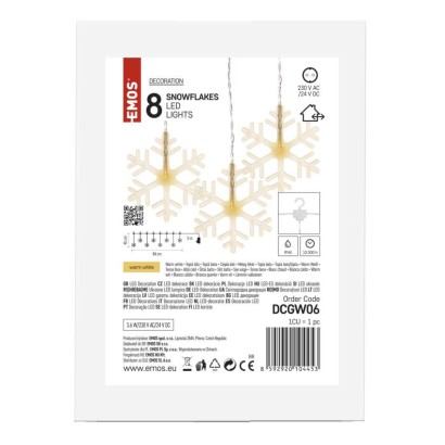 LED vianočný záves – snehové vločky, 84 cm, vnútorný, teplá biela časovač: nie|diaľkový ovládač: nie|dĺžka prívodu: 5 m|farba drôtu: neuvádza sa|farba svetla: teplá biela|krytie: IP44|materiál: plast|počet LED: 8|použitie: vonkajšie aj vnútorné|predajný obal: 1 ks, krabica|príkon: 3,6 W|produkt: záves|rozmer: 84 × 45 cm|typ napájania: sieť|vstupné napätie: 230 V AC|výstupné napätie: 24 V DC|záručná doba: 2 roky|zdroj […] zobraziť celý popis