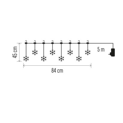 časovač: nie|diaľkový ovládač: nie|dĺžka prívodu: 5 m|farba drôtu: neuvádza sa|farba svetla: teplá biela|krytie: IP44|materiál: plast|počet LED: 8|použitie: vonkajšie aj vnútorné|predajný obal: 1 ks, krabica|príkon: 3,6 W|produkt: záves|rozmer: 84 × 45 cm|typ napájania: sieť|vstupné napätie: 230 V AC|výstupné napätie: 24 V DC|záručná doba: 2 roky|zdroj svetla: LED|životnosť: 10 000 hodín