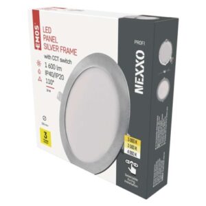 diaľkový ovládač: nie|do chodby a na schodisko: áno|do dielne a garáže: nie|do kancelárie: áno|do kuchyne: áno|do kúpeľne: nie|do obývačky, spálne a detskej izby: áno|dosah senzora: nemá senzor|do záhrady a na balkón: nie|farba svetla: teplá biela–neutrálna biela|farba tela: brúsený nikel|flicker-free: áno|frekvencia: 50/60 Hz|index podania farieb (CRI): Ra > 82|kategória: PROFI|krytie: IP40/IP20|materiál difúzora: plast (PS)|materiál LGP: PMMA|materiál tela: hliník|montážny otvor: 205 mm|možnosť stmievania: nie|náhrada za žiarovku: 100 W|napätie: 220–240 V|pohybový senzor: nie|predajný obal: 1 ks, krabica|príkon: 18 W|prúd: 84 mA|rada: NEXXO|rozmer: priemer 225 × 21 mm|spôsob montáže: vstavané|svetelná účinnosť: 83 lm/W|svetelný tok: 1 600 lm|teplota chromatičnosti: 3 000/3 500/4 000 K|tvar: kruh|typ difúzora: mliečny|typ svietidla: klasické svietidlo|účinník: > 0,9|UGR<: neuvádza sa|uhol vyžarovania: 110°|umiestnenie: stropné|výstupný prúd zo zdroja: 300 mA|záručná doba: 3 roky|zdroj svetla: LED|životnosť: 30 000 hodín
