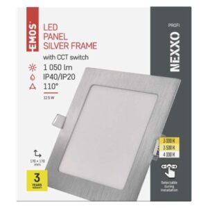 LED vstavané svietidlo NEXXO, štvorec, strieborné, 12W, CCT diaľkový ovládač: nie|do chodby a na schodisko: áno|do dielne a garáže: nie|do kancelárie: áno|do kuchyne: áno|do kúpeľne: nie|do obývačky, spálne a detskej izby: áno|dosah senzora: nemá senzor|do záhrady a na balkón: nie|farba svetla: teplá biela–neutrálna biela|farba tela: brúsený nikel|flicker-free: áno|frekvencia: 50/60 Hz|index podania farieb (CRI): Ra > […] zobraziť celý popis