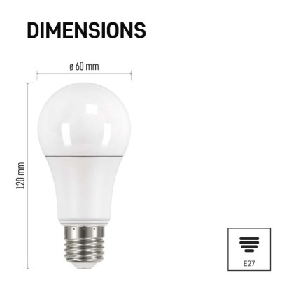 energetická trieda: E|farba svetla: neutrálna biela|index podania farieb (CRI): Ra >80|náhrada za žiarovku: 100 W|napätie: 230 V~/50 Hz|pätica (uchytenie žiarovky): E27|počet čipov: neuvádza sa|počet spínacích cyklov: 25 000|predajný obal: 3 ks, krabička|príkon: 13,2 W|rada: CLASSIC|rozmer: 120 × 60 × 60 mm|stmievateľná: nie|svetelná účinnosť: 115 lm/W|svetelný tok: 1 521 lm|technológia: LED|teplota chromatičnosti: 4 000 K|tvar: A60|typ čipov: SMD|účinník: 0.55|uhol vyžarovania: 180°|záručná doba: 3 roky|životnosť: 30 000 hodín