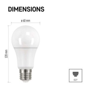 energetická trieda: E|farba svetla: neutrálna biela|index podania farieb (CRI): Ra >80|náhrada za žiarovku: 100 W|napätie: 230 V~/50 Hz|pätica (uchytenie žiarovky): E27|počet čipov: neuvádza sa|počet spínacích cyklov: 25 000|predajný obal: 1 ks, krabička|príkon: 13,2 W|rada: CLASSIC|rozmer: 120 × 60 × 60 mm|stmievateľná: nie|svetelná účinnosť: 115 lm/W|svetelný tok: 1 521 lm|technológia: LED|teplota chromatičnosti: 4 000 K|tvar: A60|typ čipov: SMD|účinník: 0.55|uhol vyžarovania: 180°|záručná doba: 3 roky|životnosť: 30 000 hodín