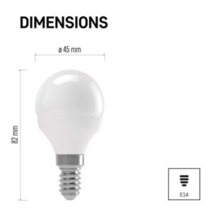 energetická trieda: F|farba svetla: neutrálna biela|index podania farieb (CRI): Ra >80|náhrada za žiarovku: 32 W|napätie: 230 V~/50 Hz|pätica (uchytenie žiarovky): E14|počet čipov: neuvádza sa|počet spínacích cyklov: 25 000|predajný obal: 1 ks, krabička|príkon: 4,1 W|rada: CLASSIC|rozmer: 82 × 45 × 45 mm|stmievateľná: nie|svetelná účinnosť: 85 lm/W|svetelný tok: 350 lm|technológia: LED|teplota chromatičnosti: 4 000 K|tvar: Mini Globe|typ čipov: SMD|účinník: 0,49|uhol vyžarovania: 150°|záručná doba: 3 roky|životnosť: 30 000 hodín