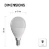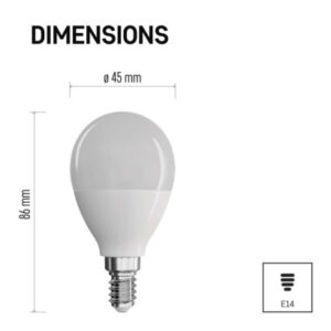 energetická trieda: E|farba svetla: studená biela|index podania farieb (CRI): Ra >80|náhrada za žiarovku: 60 W|napätie: 230 V~/50 Hz|pätica (uchytenie žiarovky): E14|počet čipov: neuvádza sa|počet spínacích cyklov: 25 000|predajný obal: 1 ks, krabička|príkon: 7,3 W|rada: CLASSIC|rozmer: 86 × 45 × 45 mm|stmievateľná: nie|svetelná účinnosť: 110 lm/W|svetelný tok: 806 lm|technológia: LED|teplota chromatičnosti: 6 500 K|tvar: Mini Globe|typ čipov: SMD|účinník: 0,56|uhol vyžarovania: 220°|záručná doba: 3 roky|životnosť: 30 000 hodín