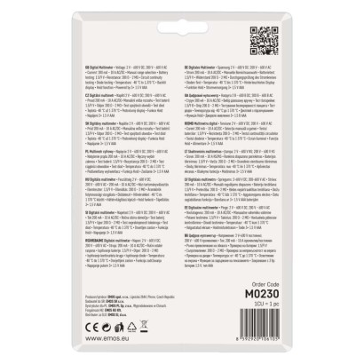 Multimeter MD-230 AC napätie: 200–600 V|AC prúd: 200 mA – 10 A|automatické vypnutie: áno|bezkontaktná detekcia AC napätia: nie|DC napätie: 2–600 V|DC prúd: 200 mA – 10 A|elektrický odpor: 200 Ohm – 2 MOhm|indikácia slabej batérie: áno|kliešťový multimeter: nie|kontaktná detekcia AC napätia: nie|meranie teploty: -40 °C až +300 °C|napájanie: 3× 1,5 V AAA (súčasťou balenia)|podsvietenie displeja: […] zobraziť celý popis